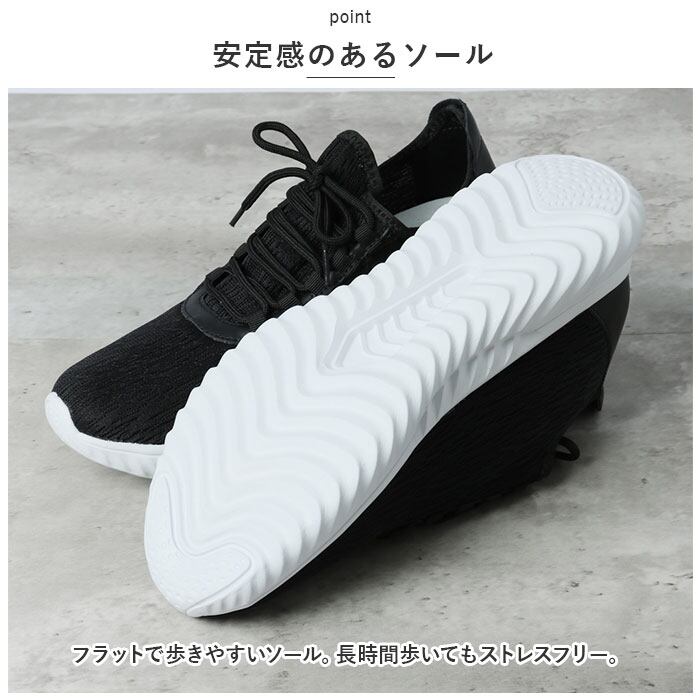 ・フラットで歩きやすいソール。長時間歩いてもストレスフリー。