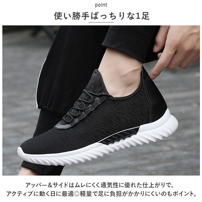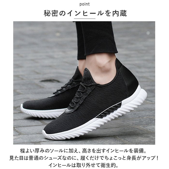 ・程よい厚みのソールに加え、高さを出すインヒールを装備。見た目は普通のシューズなのに、履くだけでちょこっと身長がアップ!インヒールは取り外せて衛生的。