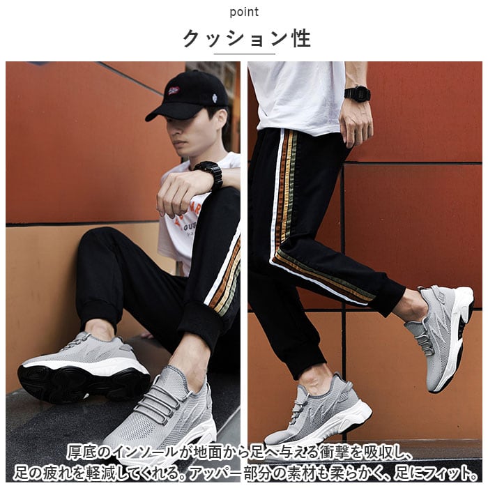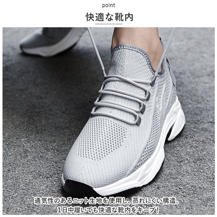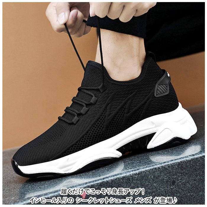 ・厚底のソールとインヒール合わせて約7.5cmアップ!見た目は普通のスニーカー、でも履くだけで身長がUPする優れモノ。