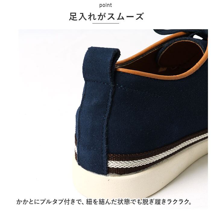 ・かかとにプルタブ付きで、紐を結んだ状態でも脱ぎ履きラクラク。