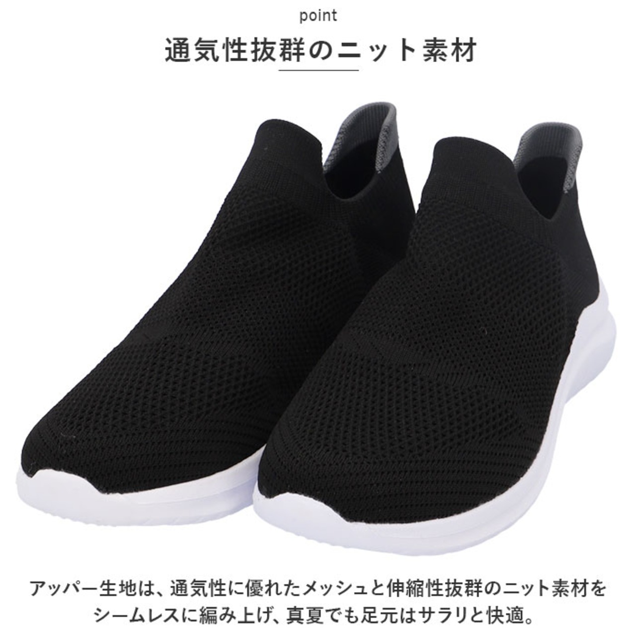 【通気性抜群のニット素材】