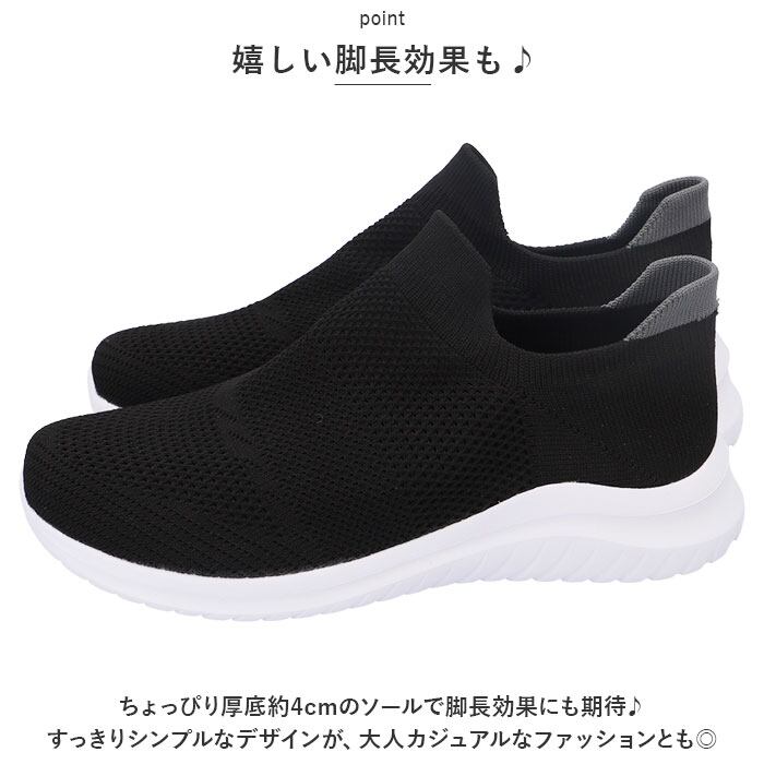 ・ちょっぴり厚底約4cmのソールで脚長効果にも期待♪すっきりシンプルなデザインが、大人カジュアルなファッションとも相性抜群。