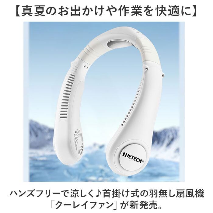 ・ハンズフリーで涼しく♪首掛け式の羽無し扇風機「クーレイファン」が新発売。