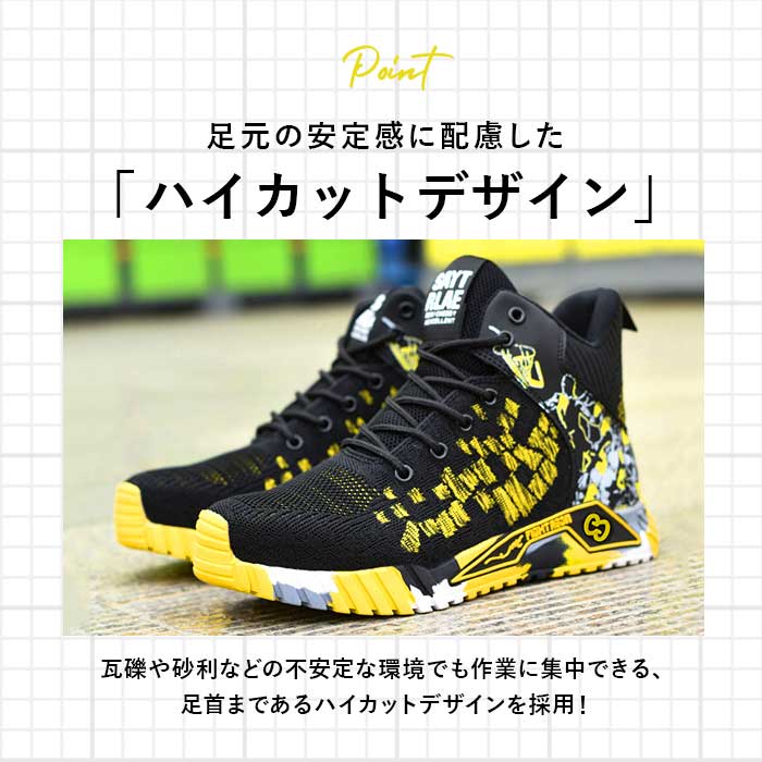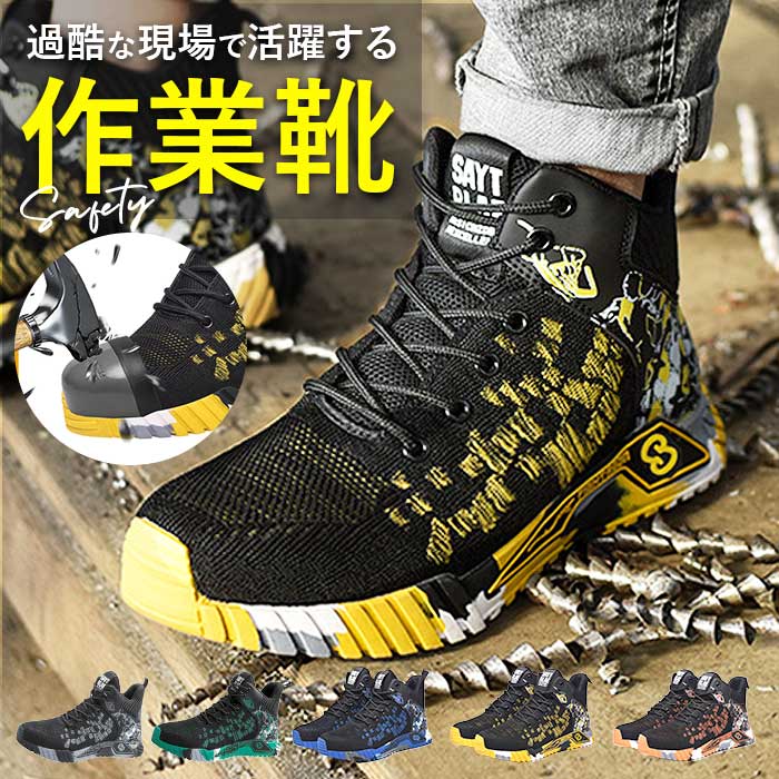 安全靴 ハイカット 通販 セーフティーシューズ 作業靴 作業用 あんぜんくつ メンズ 安全スニーカ 靴 くつ スニーカー おしゃれ 踏み抜き防止 つま先ガード 鋼先芯入り 厚底 通気 レースアップ 紐 カジュアル DIY 工事現場 アウトドア 登山 レディース