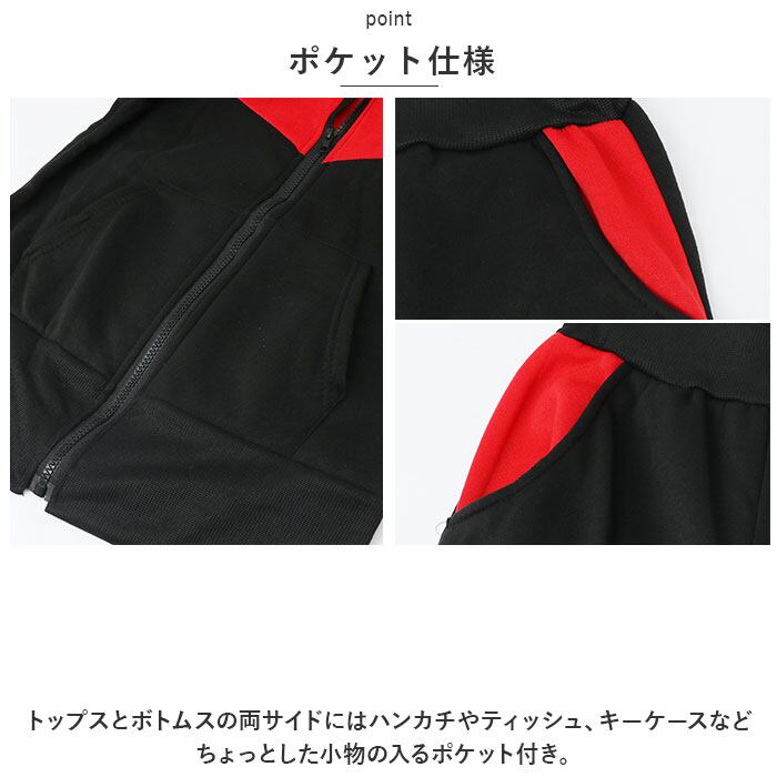 ・トップスとボトムスの両サイドにはハンカチやティッシュ、キーケースなどちょっとした小物の入るポケット付き。