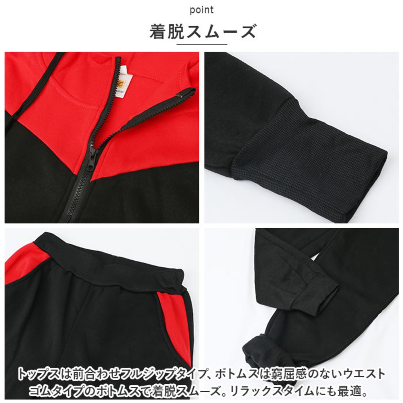 ・トップスは前合わせフルジップタイプ、ボトムスは窮屈感のないウエストゴムタイプのボトムスで着脱スムーズ。リラックスタイムにも最適。