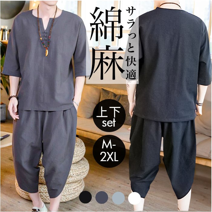セットアップ メンズ 夏 綿麻 2点セット