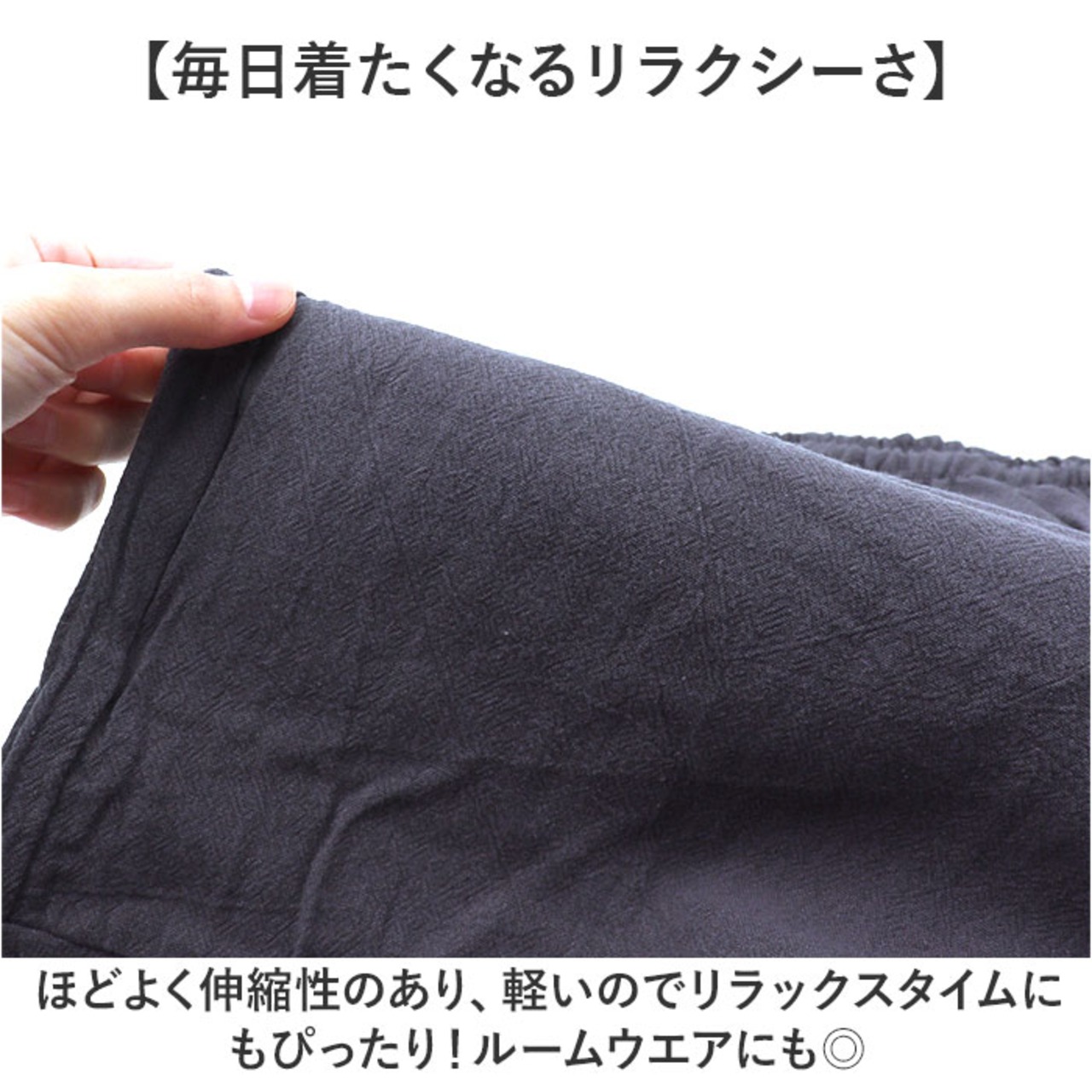 ・ほどよく伸縮性のあり、軽いのでリラックスタイムにもぴったり!ルームウエアにも◎