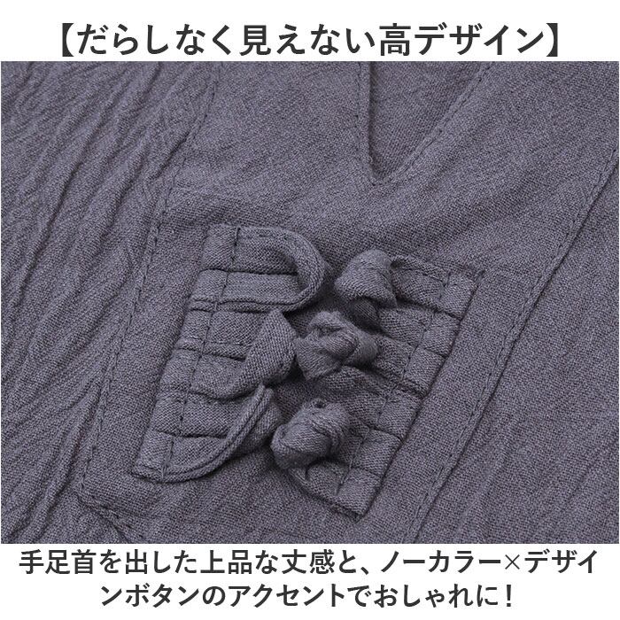 ・手足首を出した上品な丈感と、ノーカラー×デザインボタンのアクセントでおしゃれに!