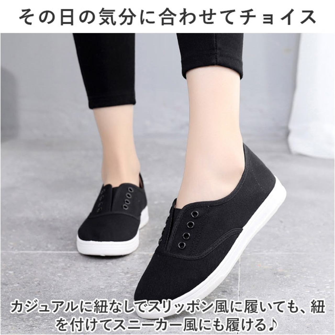 ・カジュアルに紐なしでスリッポン風に履いても、紐を付けてスニーカー風にも履ける♪
