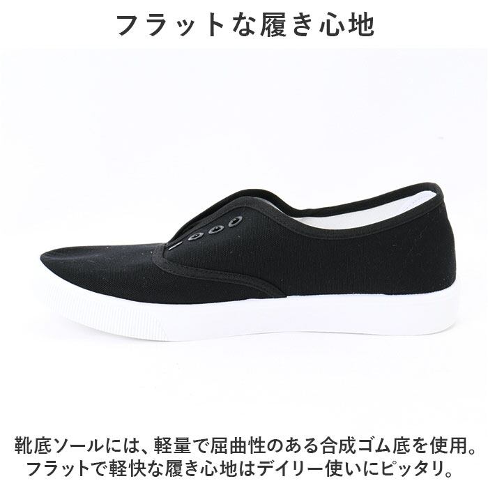 ・靴底ソールには、軽量で屈曲性のある合成ゴム底を使用。フラットで軽快な履き心地はデイリー使いにピッタリ。