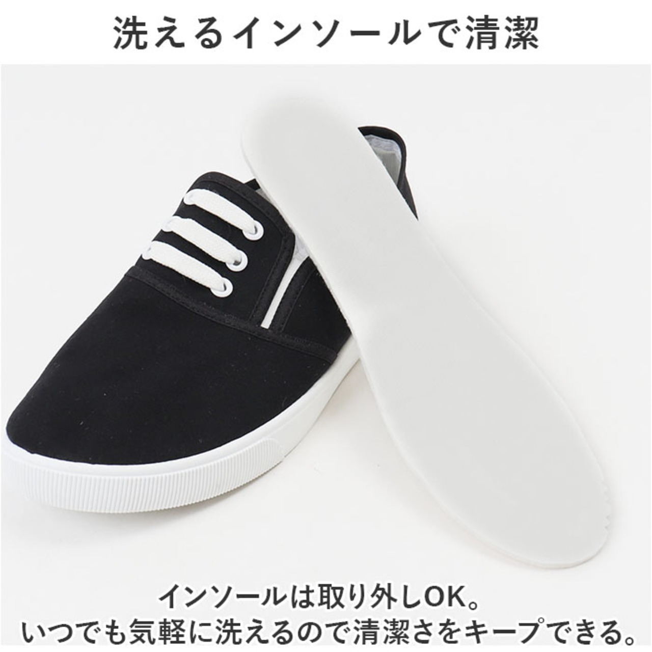 【洗えるインソールで清潔】