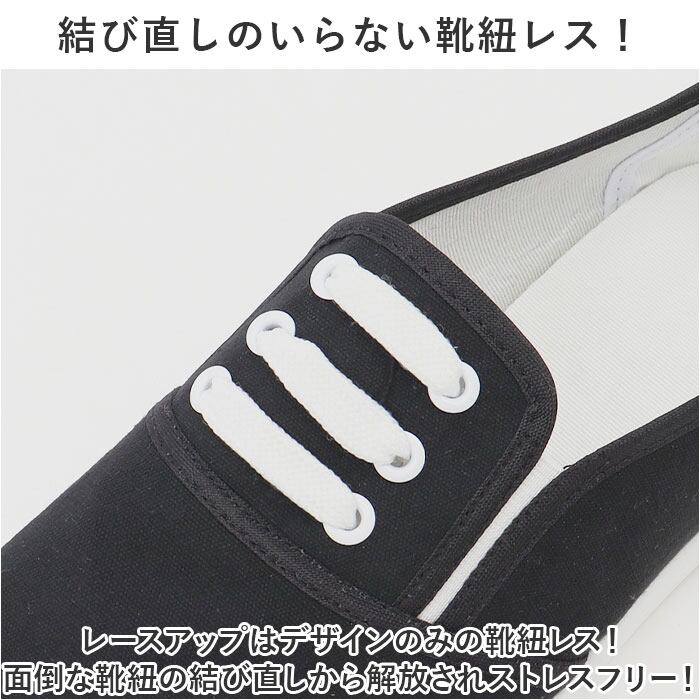 ・レースアップはデザインのみの靴紐レス!面倒な靴紐の結び直しから解放されストレスフリー!
