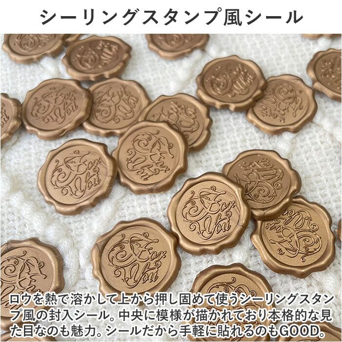 ・ロウを熱で溶かして上から押し固めて使うシーリングスタンプ風の封入シール。中央に模様が描かれており本格的な見た目なのも魅力。