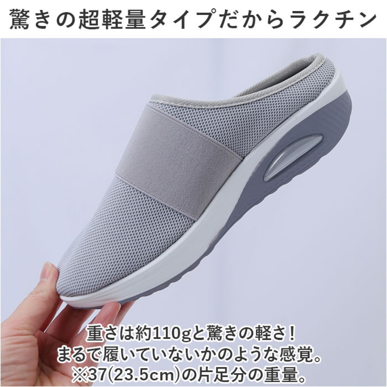 ・重さは約110gと驚きの軽さ!まるで履いていないかのような感覚。※37(23.5cm)の片足分の重量。