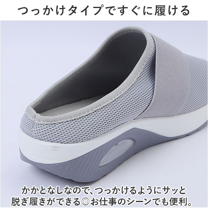 ・かかとなしなので、つっかけるようにサッと脱ぎ履きができる◎お仕事のシーンでも便利。