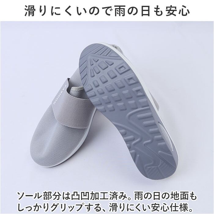 ・ソール部分は凸凹加工済み。雨の日の地面もしっかりグリップする、滑りにくい安心仕様。
