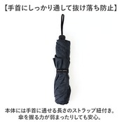 ・本体には手首に通せる長さのストラップ紐付き。傘を握る力が弱まったりしても安心。