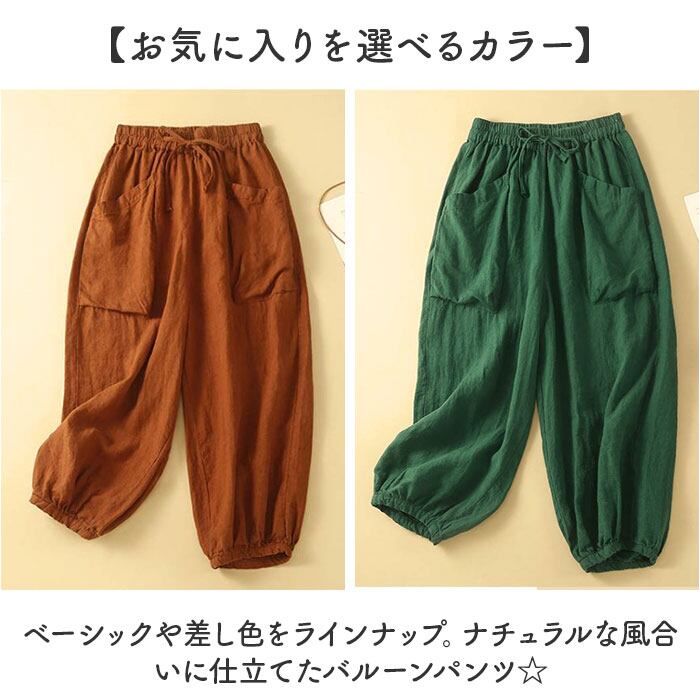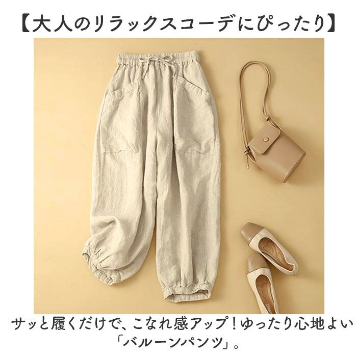 バルーンパンツ 麻混紡 コクーンパンツ ゆったり