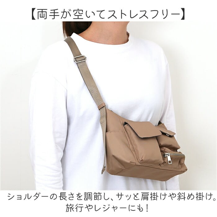 ・ショルダーの長さを調節し、サッと肩掛けや斜め掛け。旅行やレジャーにも!