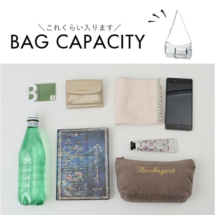 ・程よいマチの横長フォルム。A5がぴったり、長財布と500mlペットボトルを同時に収納◎