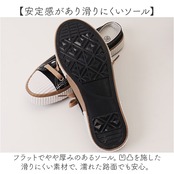 ・フラットでやや厚みのあるソール。凹凸を施した滑りにくい素材で、濡れた路面でも安心。