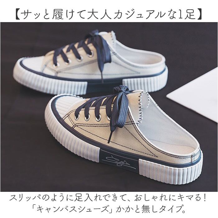 ・スリッパのように足入れできて、おしゃれにキマる!「キャンバスシューズ」かかと無しタイプ。