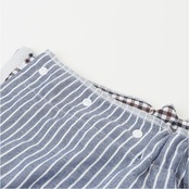 ・体に巻き付けて、上部3箇所のボタンを留めるだけ。ボタンの留める位置で調整も可能。