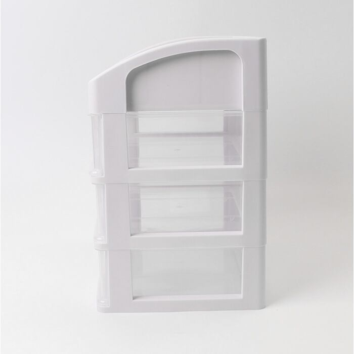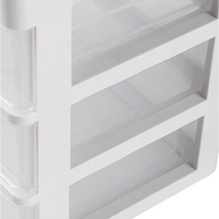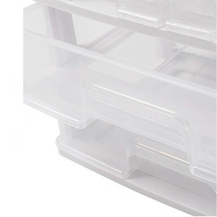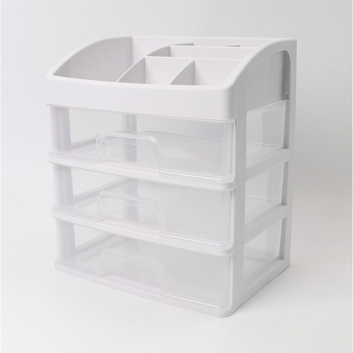 ・3段に分かれた引き出し。小物が散らばることなく、クリア仕様で中身もひと目で確認。