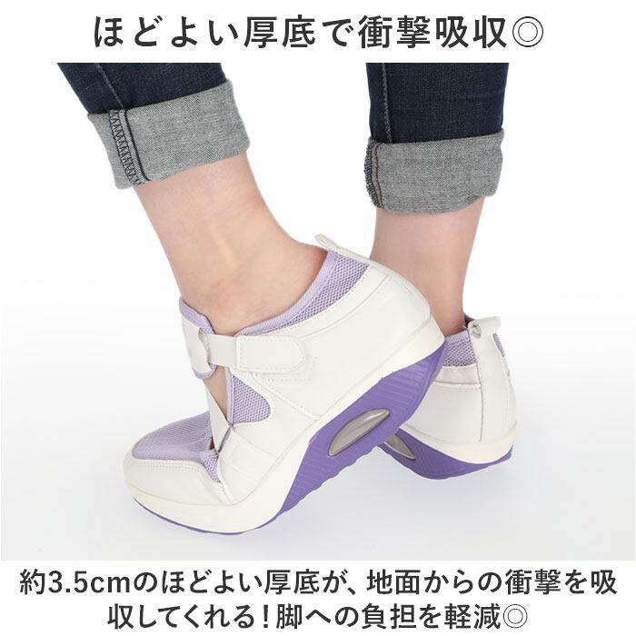 ・約3.5cmのほどよい厚底が、地面からの衝撃を吸収してくれる!脚への負担を軽減◎
