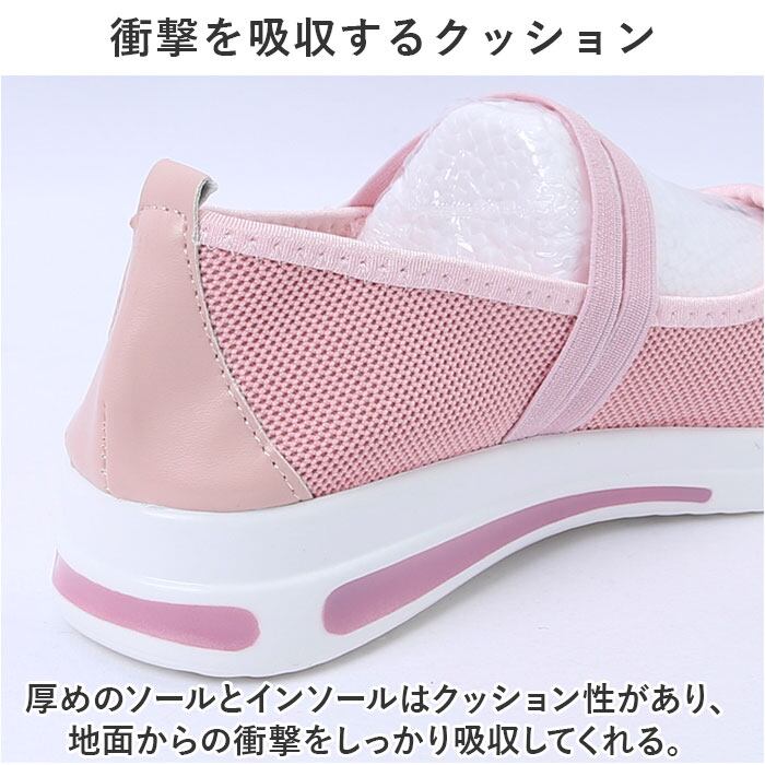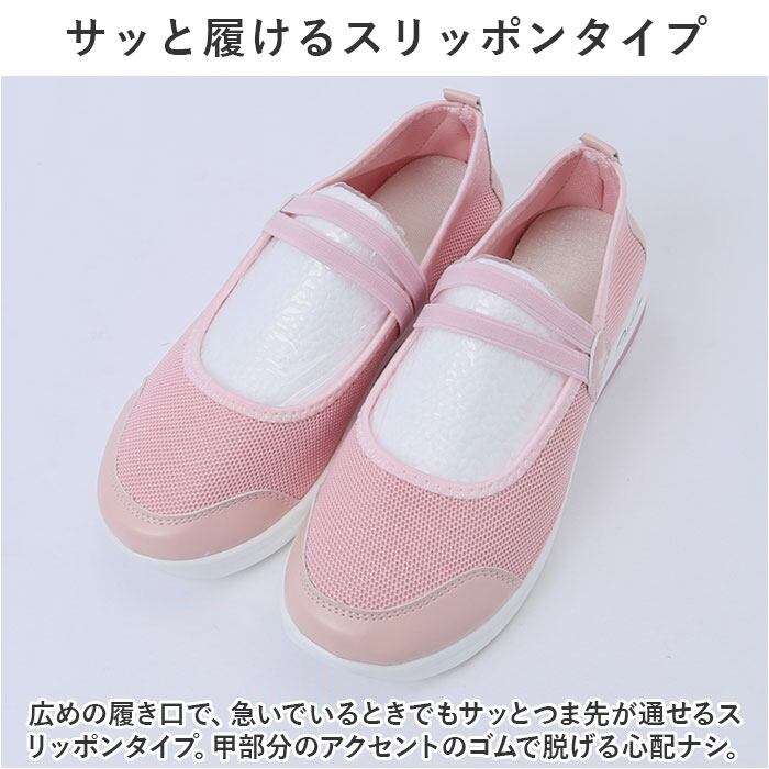 ・広めの履き口で、急いでいるときでもサッとつま先が通せるスリッポンタイプ。甲部分のアクセントのゴムで脱げる心配ナシ。