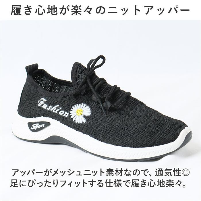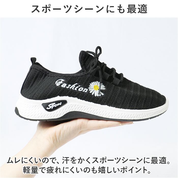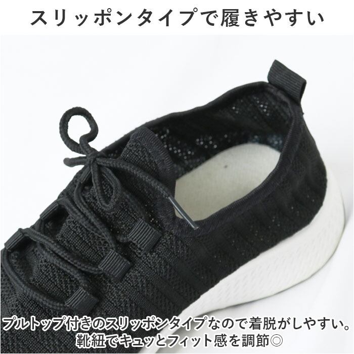 ・アッパーがメッシュニット素材なので、通気性◎足にぴったりフィットする仕様で履き心地楽々。