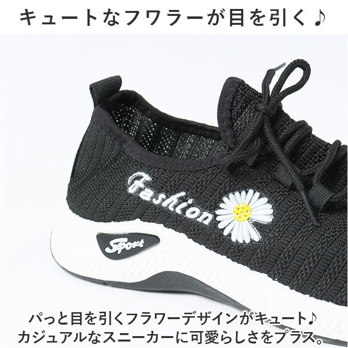 ・パっと目を引くフラワーデザインがキュート♪カジュアルなスニーカーに可愛らしさをプラス。
