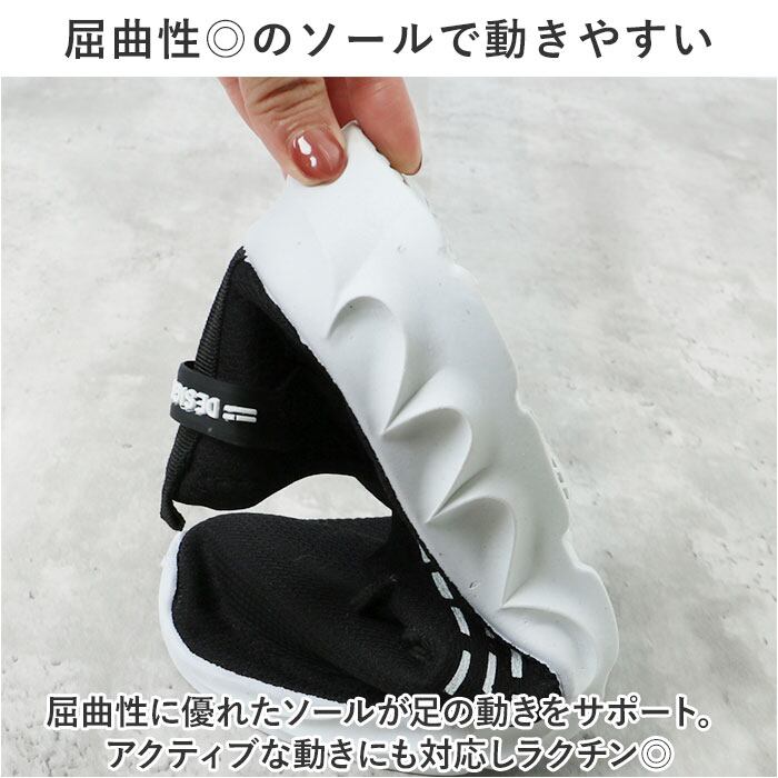 ・屈曲性に優れたソールが足の動きをサポート。アクティブな動きにも対応しラクチン◎