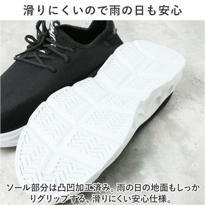 ・ソール部分は凸凹加工済み。雨の日の地面もしっかりグリップする、滑りにくい安心仕様。