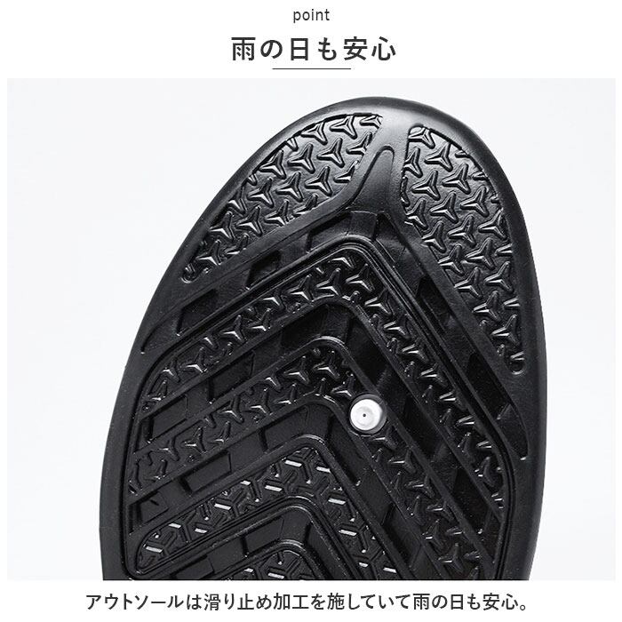 ・アウトソールは滑り止め加工を施していて雨の日も安心。
