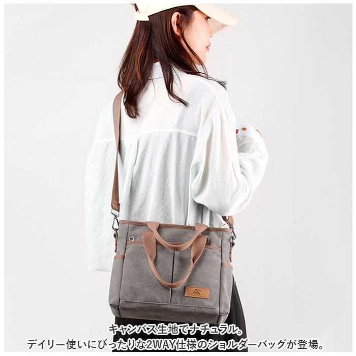 ・キャンバス生地でナチュラル。デイリー使いにぴったりな2WAY仕様のショルダーバッグが登場。