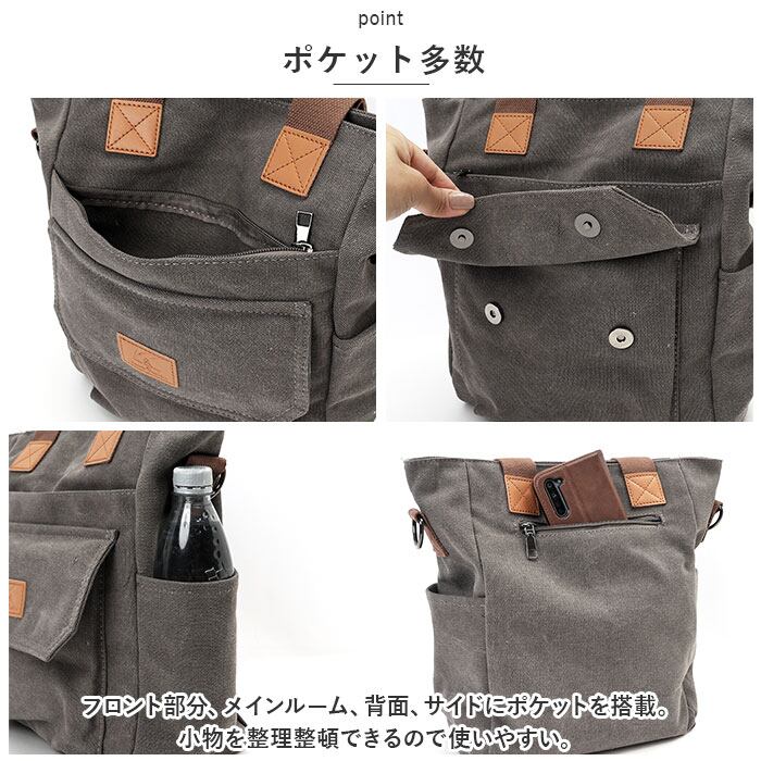 ・カジュアルな風合いが魅力のキャンバス生地を使用。ファッションに馴染み、オシャレにキマる。丈夫なのも嬉しいポイント。