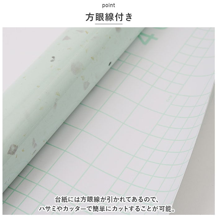 ・台紙には方眼線が引かれてあるので、ハサミやカッターで簡単にカットすることが可能。