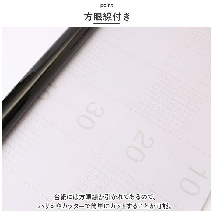 ・台紙には方眼線が引かれてあるので、ハサミやカッターで簡単にカットすることが可能。