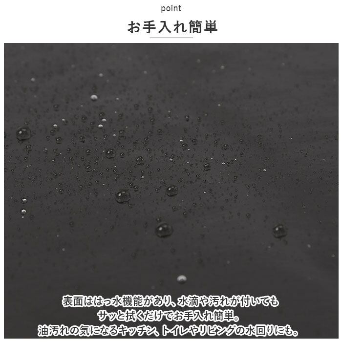 ・表面ははっ水機能があり、水滴や汚れが付いてもサッと拭くだけでお手入れ簡単。油汚れの気になるキッチン、トイレやリビングの水回りにも。