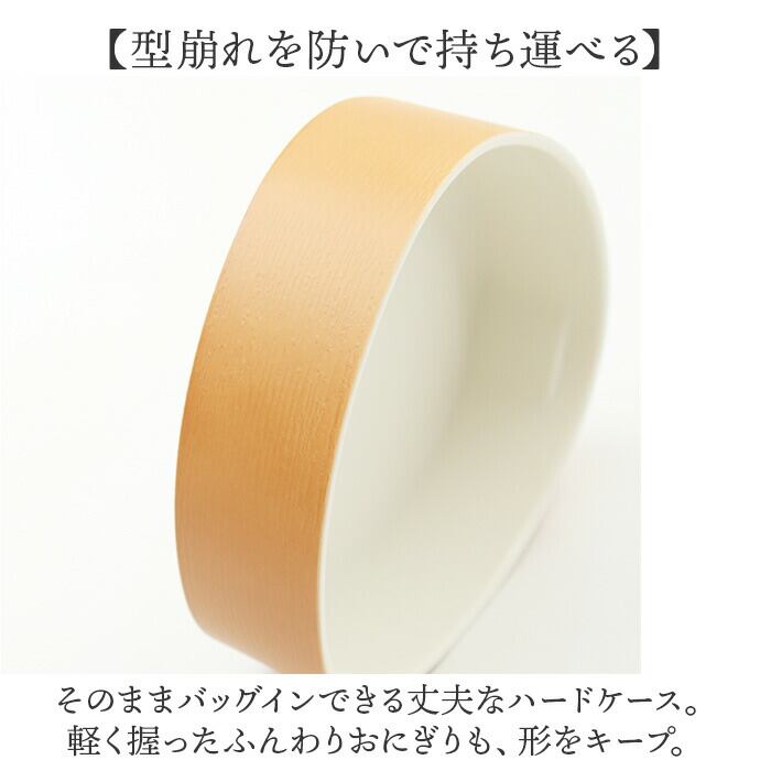 ・そのままバッグインできる丈夫なハードケース。軽く握ったふんわりおにぎりも、形をキープ。
