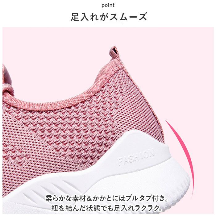 ・柔らかな素材&かかとにはプルタブ付き。紐を結んだ状態でも足入れラクラク。