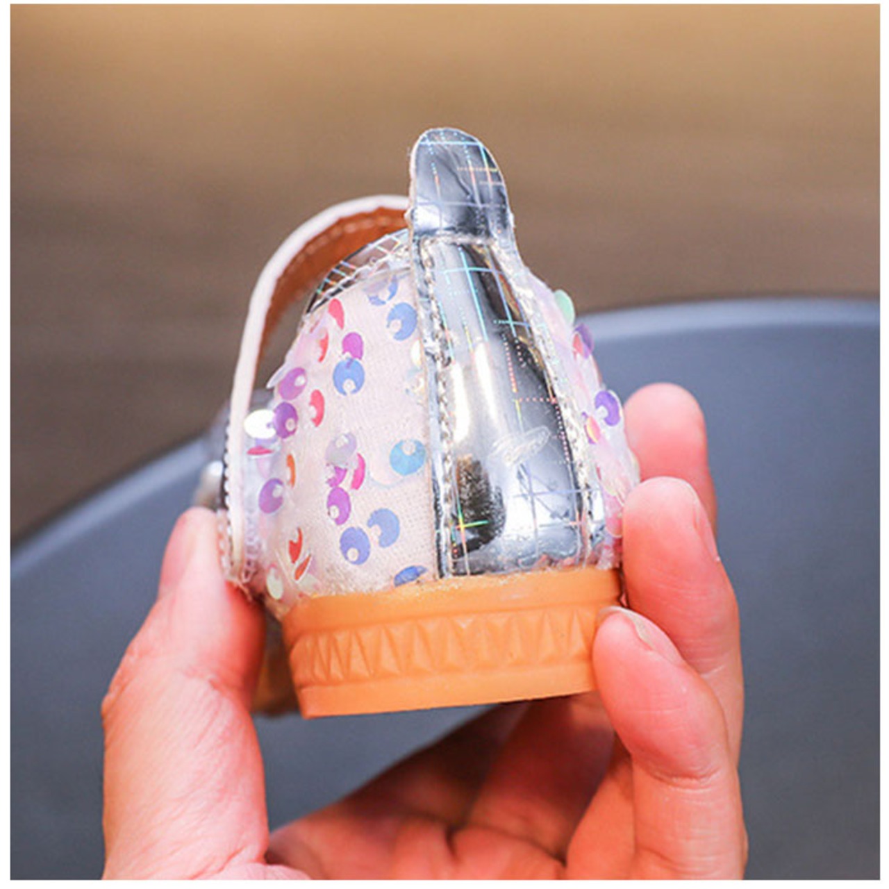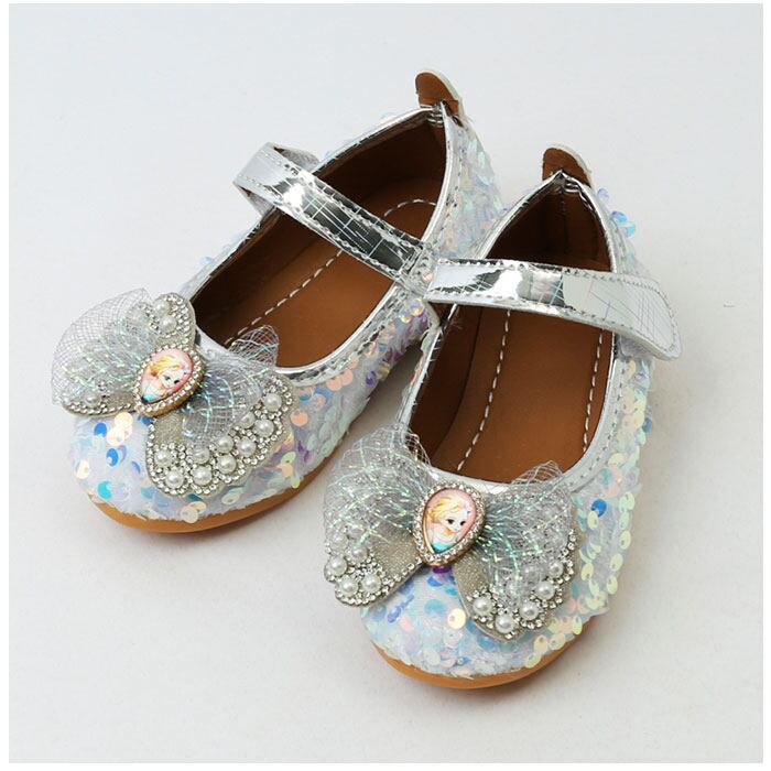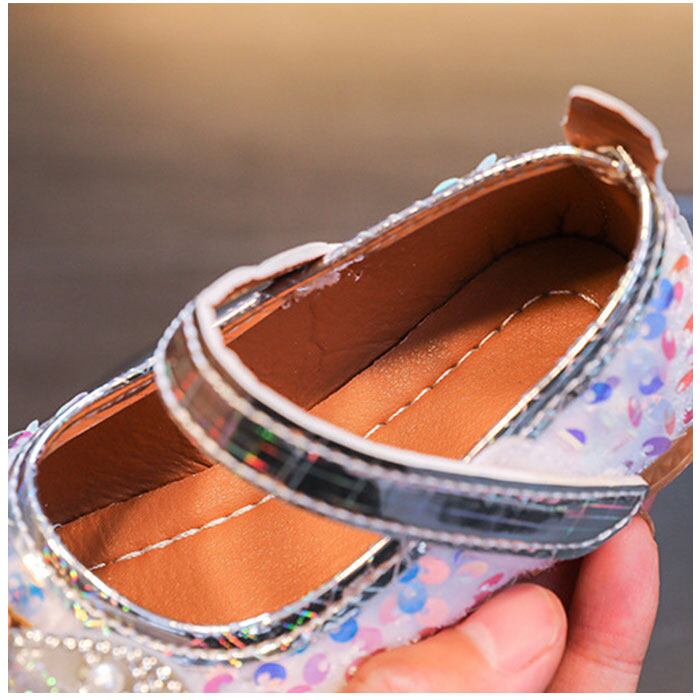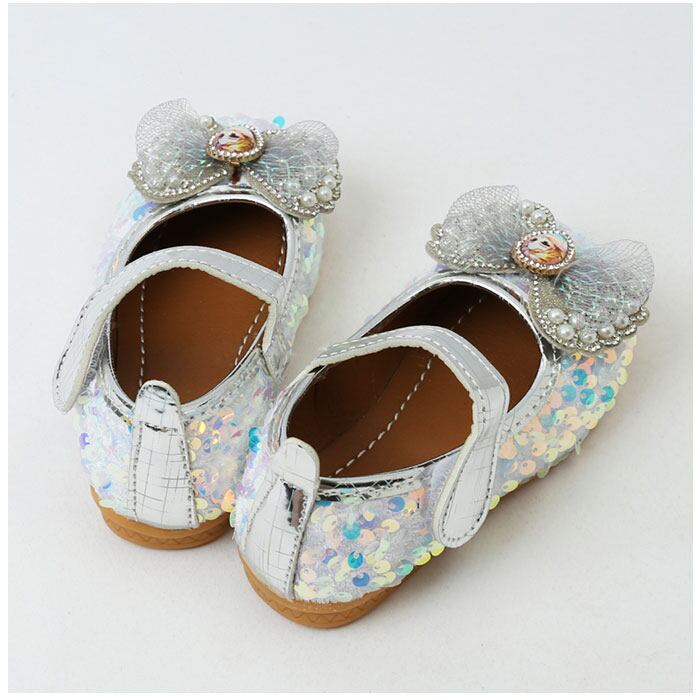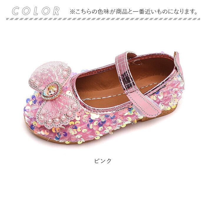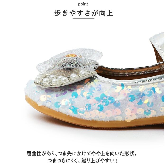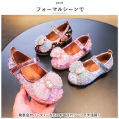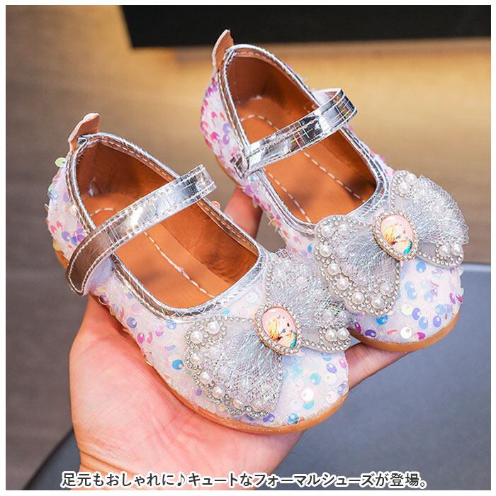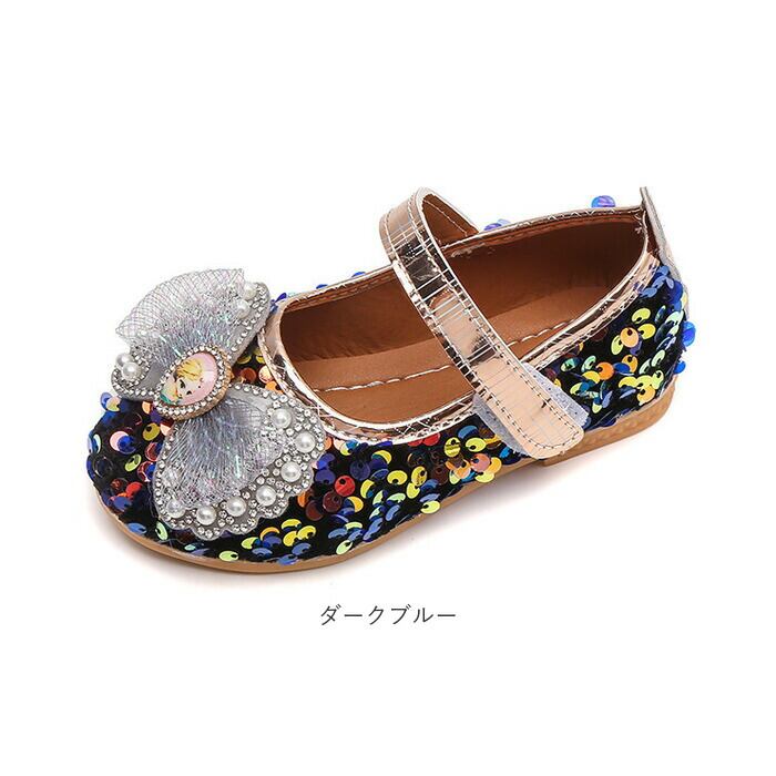 ・シューズ全体にスパンコールを散りばめた、キラキラ輝くシューズ☆立体的なリボン&女の子のモチーフも印象的で、イミテーションパールやストーンもプラス。