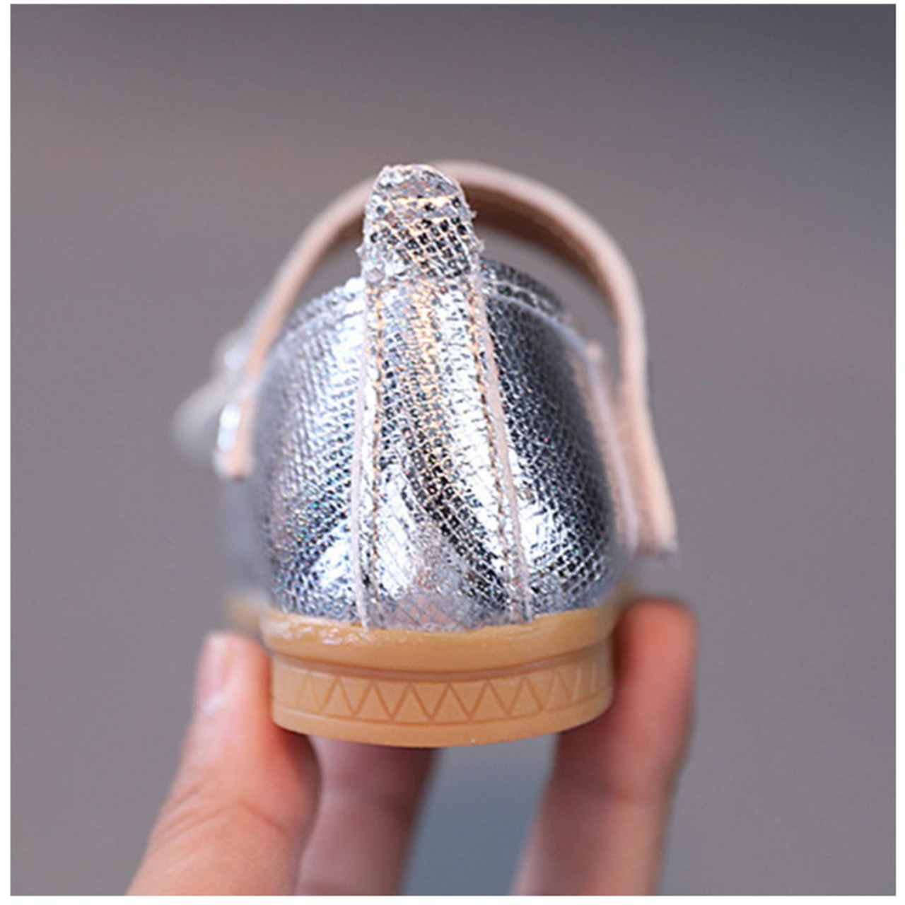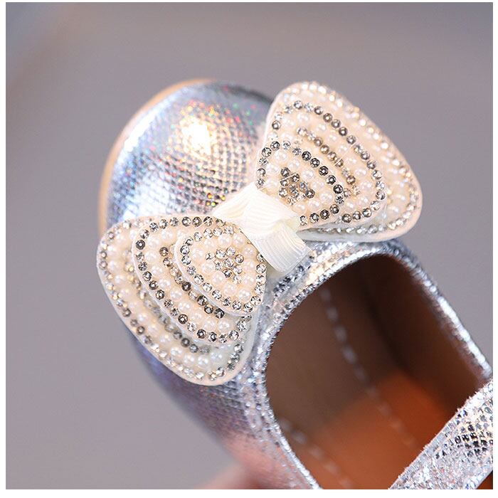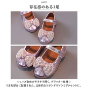 ・シューズ全体がキラキラ輝く、グリッター仕様☆つま先部分に配置された、立体的なリボンデザインもアクセントに。