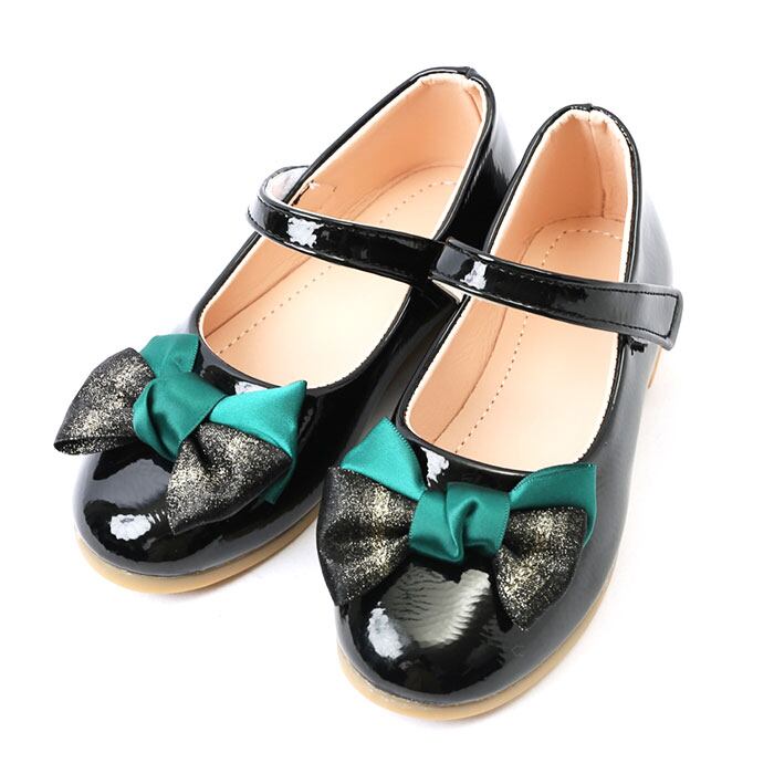・バイカラーの大きなリボンがポイント。ツヤのあるエナメル調もおしゃれ♪