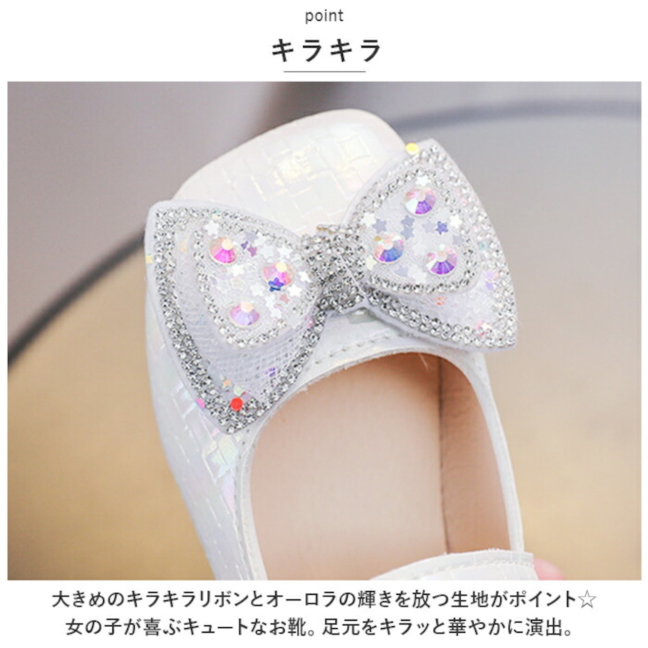 ・大きめのキラキラリボンとオーロラの輝きを放つ生地がポイント☆女の子が喜ぶキュートなお靴。足元をキラッと華やかに演出。