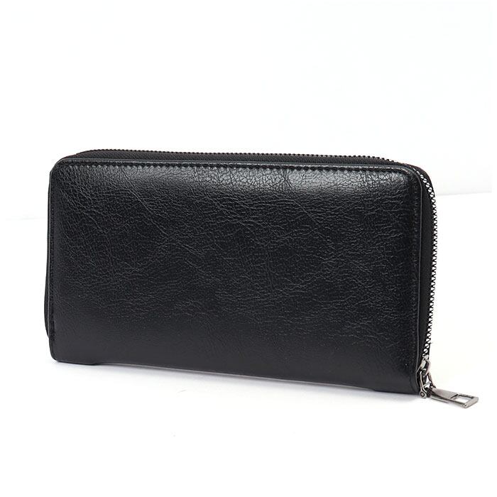 ・フロントの型押しデザインがアクセントになった長財布がセットに。カードポケットや小銭入れも付いていて収納力抜群。
