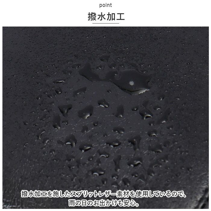 ・撥水加工を施したスプリットレザー素材を使用しているので、雨の日のお出かけも安心。
