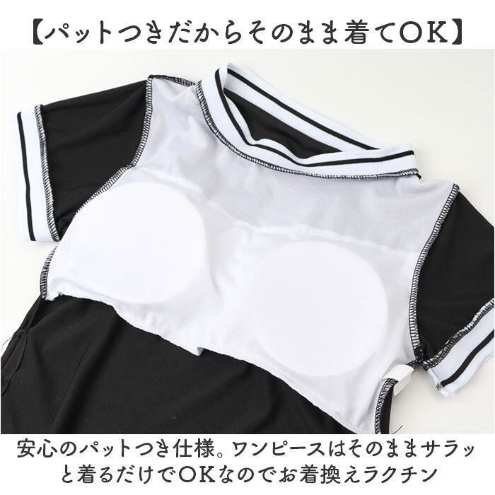 ・安心のパットつき仕様。ワンピースはそのままサラッと着るだけでOKなのでお着換えラクチン